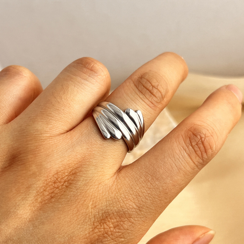 Anillos ajustables para mujer de acero inoxidable dorado con diseño geométrico simple de serie simple de 1 pieza